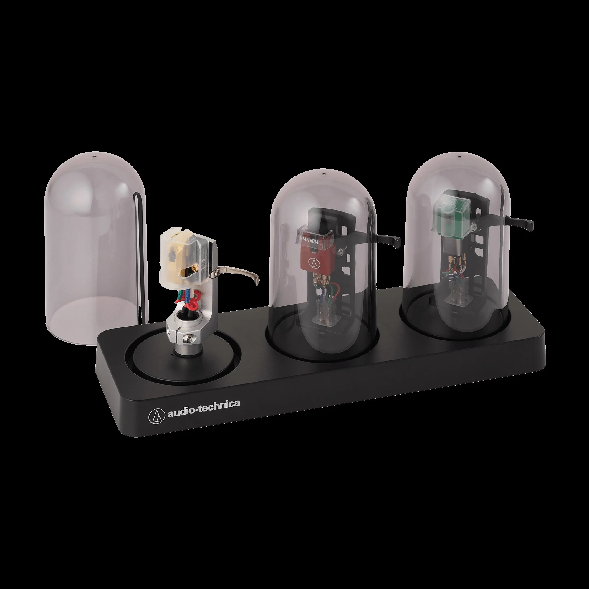 L’AT6003R est conçu pour ranger trois ensembles de têtes de lecture avec cellules phono montées. Le boîtier conserve les têtes de lecture en position verticale et comprend trois capsules anti-UV pour recouvrir les têtes de lecture/cellules. Cellules non incluses