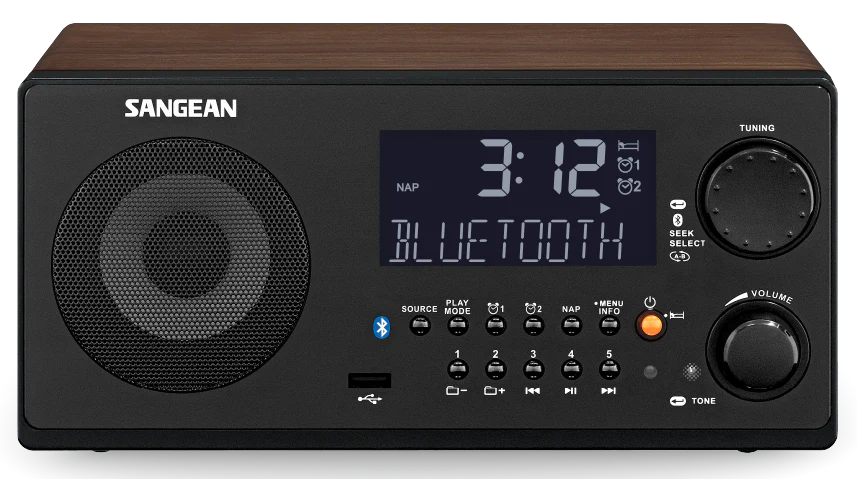 Sangean WR22 - Radio réveil numérique AM/FM, USB, Bluetooth
